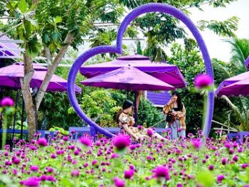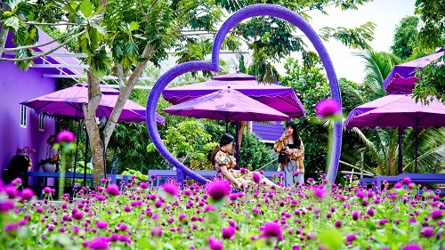 14g30: Tham quan Căn Nhà Màu Tím (vé cổng tự túc): Toàn bộ căn nhà và khuôn viên vườn 5.000m2 được thiết kế toàn màu tím thơ mộng, cùng nhiều tiểu cảnh ấn tượng thu hút đông khách đến tham quan đặc biệt là các bạn trẻ.