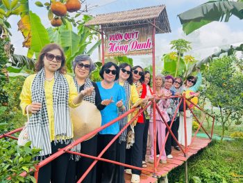 09h15: Đoàn di chuyển đến điểm tham quan đầu tiên: Vườn Quýt Hồng Lai Vung